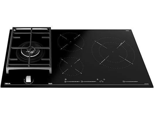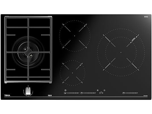 Placa Híbrida Teka JZC 94313 ABN - Inducción + Gas, 4 Zonas, 28 cm Zona Grande, Gas Natural, 90 cm, Negro