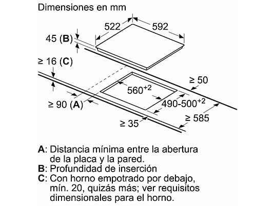 Con potencia total de 5700 W y dimensiones de hueco de 560 x 490 x 45 mm, es una opción fiable, segura y versátil para cualquier cocina moderna.
