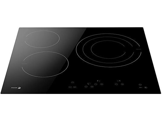 Placa vitrocerámica Fagor 3VFT-330AC de 3 zonas y zona triple, 59 cm, negra, integrable, con función Booster, bloqueo infantil y temporizador. Perfecta para cocinar rápido, seguro y con control táctil.