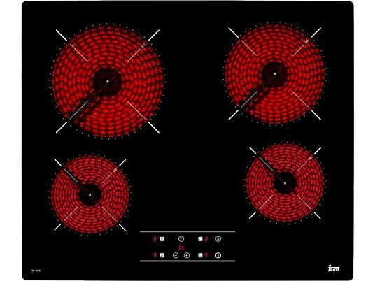 • Placa Vitrocerámica Teka TB 6415, 4 Zonas, Zona Grande 21 cm, 60 cm, Negro, Touch Control, Función Booster, Apagado Automático
