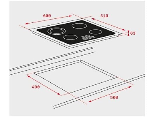 Con un diseño negro elegante y acabado liso, dimensiones de 60 x 60 cm y altura de 11 cm, se integra fácilmente en cualquier cocina estándar, combinando eficiencia, estilo y facilidad de limpieza. Su potencia de hasta 6.300 W permite cocinar de manera rápida y eficiente, optimizando el tiempo en la cocina.