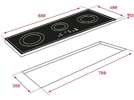 Placa Vitrocerámica Teka TRC 83631, 3 Zonas, 80 cm, Negra, Touch Control, Función Booster y Stop & Go
