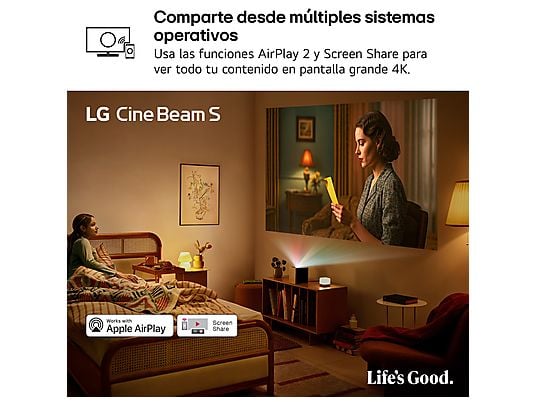 Ideal para cine en casa, gaming, streaming y presentaciones, el LG CineBeam S combina calidad de imagen profesional con un diseño compacto y fácil de instalar.