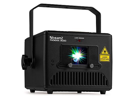Proyector láser RGB BeamZ Phoenix 3000, 3W, Rojo Verde Azul, DMX, Modo Automático y Sonido, Seguridad, para Eventos y Clubs