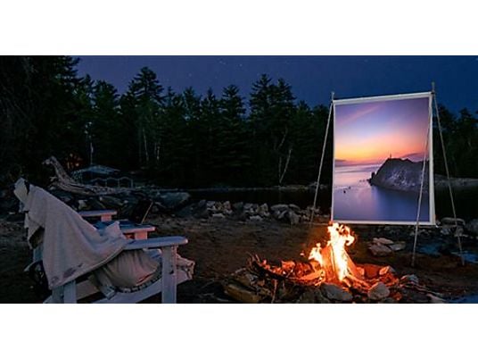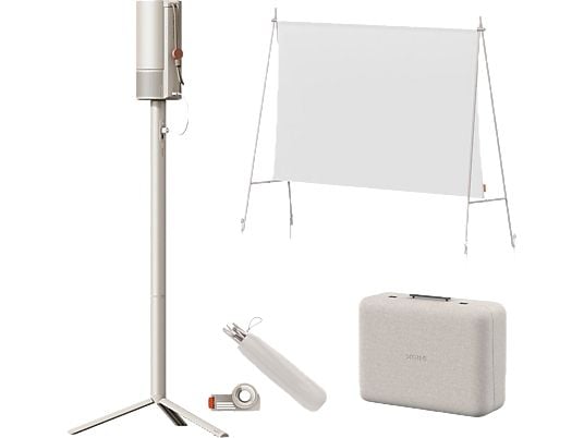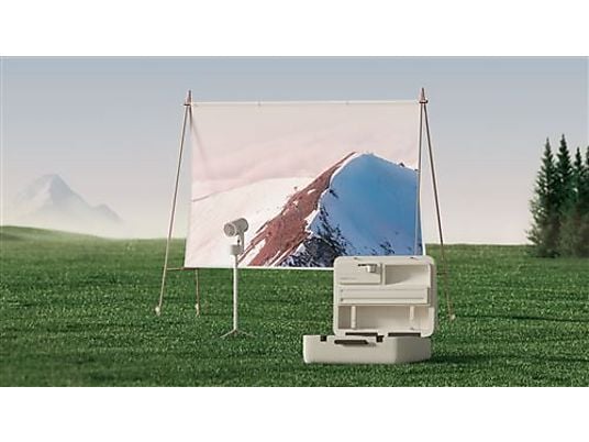 Este kit incluye todo lo necesario para tu cine portátil: una pantalla de proyección de 70 pulgadas, un estuche de transporte para mayor protección, y un soporte con batería incorporada para autonomía extra. Además, los altavoces Harman/Kardon de 5W cada uno te ofrecen un sonido envolvente para complementar la calidad visual. Su diseño resistente a caídas asegura una larga durabilidad.