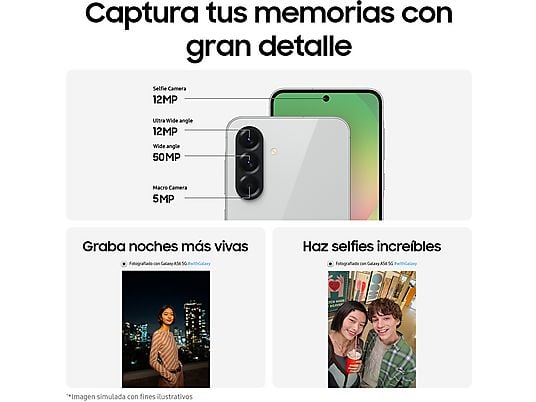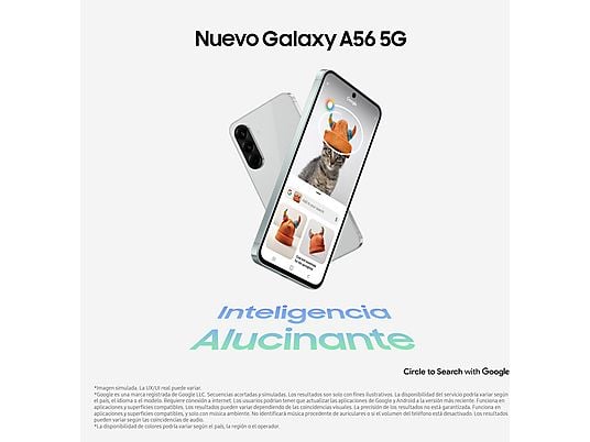 • Samsung Galaxy A56 5G 256GB Negro, 8GB RAM, Pantalla 6.7" FHD+ Super AMOLED, Exynos 1580, Batería 5000 mAh, Android 15