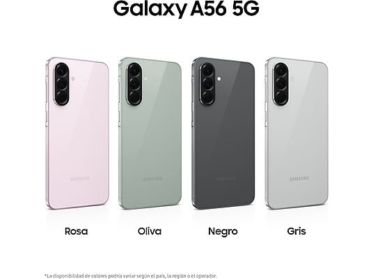 Su certificación IP67 protege contra agua y polvo, y con hasta 6 años de actualizaciones de sistema operativo y seguridad, tu Galaxy A56 5G se mantiene al día. Disponible en Negro, Gris, Oliva y Rosa, combina estilo, durabilidad y tecnología avanzada.
