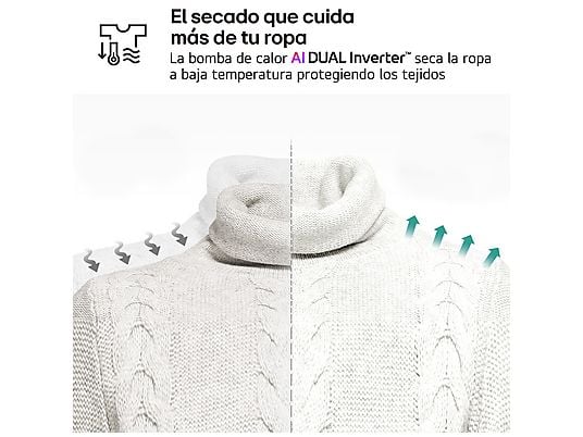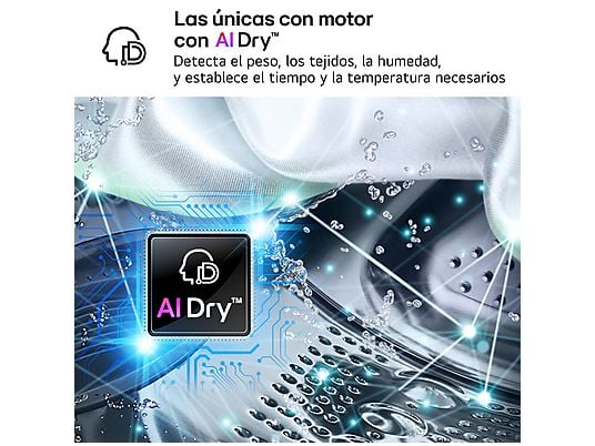Incorpora la innovadora tecnología AI DUAL Inverter™, que utiliza un sistema de doble cilindro para lograr menos ruido y vibraciones, menor consumo energético y un secado más rápido. Además, el sistema AI Dry™ analiza automáticamente el peso, tipo de tejido y nivel de humedad para ajustar la temperatura y el tiempo de secado, protegiendo tus prendas en cada ciclo.