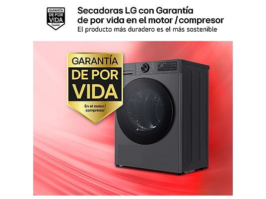 Secadora LG RHX5009TBB de bomba de calor con 9 kg de capacidad, tecnología AI DUAL Inverter™, AI Dry™, TurboDry™, conectividad WiFi ThinQ, 12 programas y acabado en acero grafito mate antihuellas.
