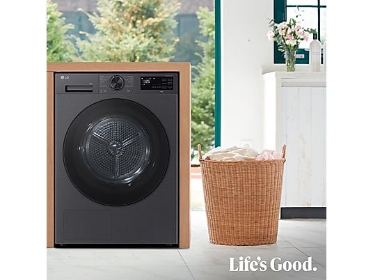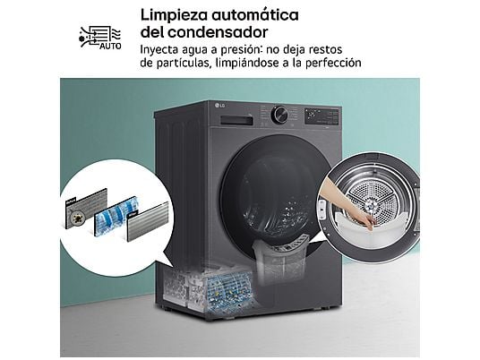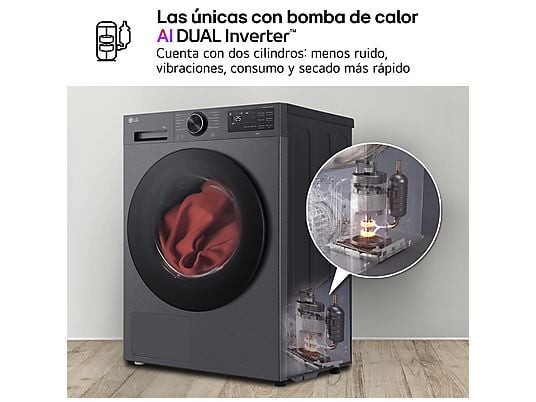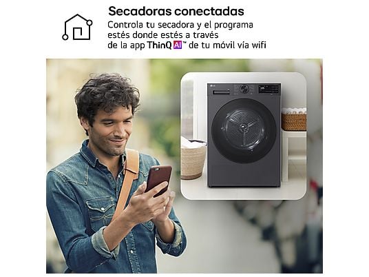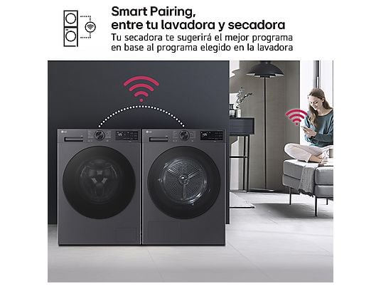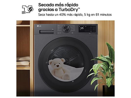 Secadora Bomba de Calor LG RHX5009TBB, 9 kg, AI DUAL Inverter™, ThinQ WiFi, 12 Programas, TurboDry, Acero Grafito Mate Antihuellas