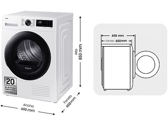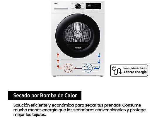 Secadora Bomba de Calor Samsung DV90DG52A0AEEC 9 kg, 14 Programas, OptimalDry, Hygiene Care+, SmartThings WiFi, Clase C, Blanca