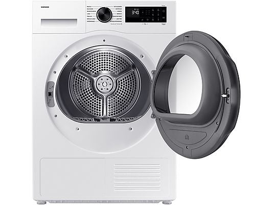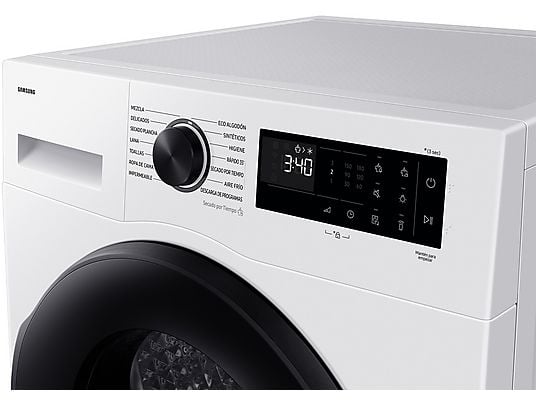 Secadora Samsung DV90DG52A0AEEC de bomba de calor con 9 kg de capacidad, 14 programas, tecnología OptimalDry, función Hygiene Care+, conectividad SmartThings WiFi y clase energética C, en color blanco.