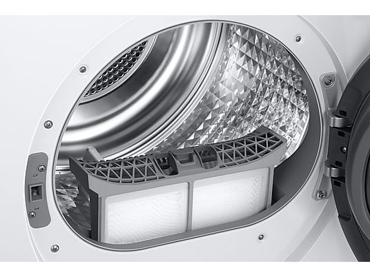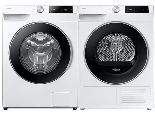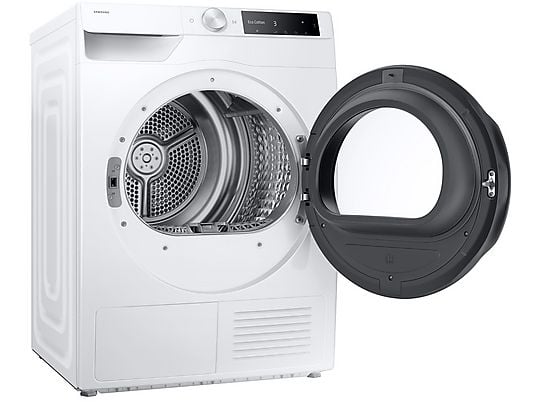 Secadora Samsung DV90DG52A0AEEC de bomba de calor con 9 kg de capacidad, 14 programas, tecnología OptimalDry, función Hygiene Care+, conectividad SmartThings WiFi y clase energética C, en color blanco.