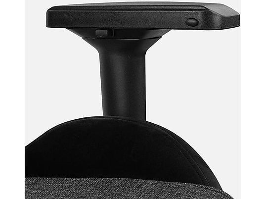 Silla Gaming Corsair TC100 Relaxed en gris con tela transpirable, reposabrazos 2D ajustables y respaldo reclinable hasta 160°. Incluye cojín lumbar y cervical. Soporta hasta 120 kg.