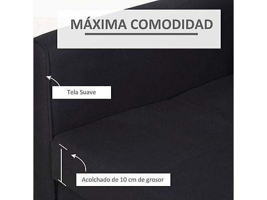 El sofá cama HOMCOM 2 plazas combina diseño moderno, funcionalidad y confort. Tapizado en lino sintético gris con respaldo dividido reclinable en 3 posiciones, se convierte fácilmente en cama. Ideal para lofts, estudios o apartamentos pequeños, con estructura de madera de caucho y pies de madera para mayor estabilidad.