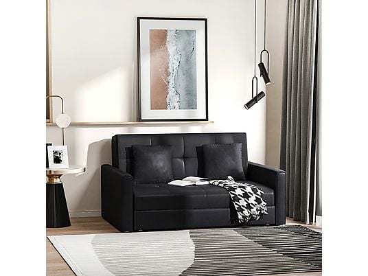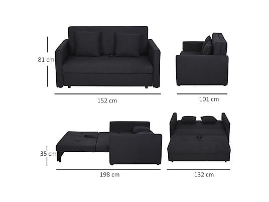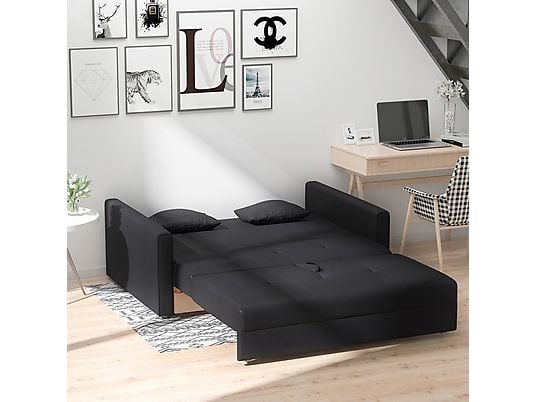 El sofá cama HOMCOM 2 plazas combina funcionalidad y confort, ideal para casas pequeñas, estudios u oficinas. Tapizado en poli algodón gris carbón y con estructura de madera de eucalipto, incluye espacio de almacenamiento bajo el asiento y se convierte fácilmente en cama. Soporta hasta 200 kg y viene con 2 cojines incluidos.