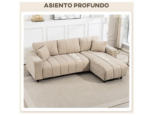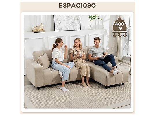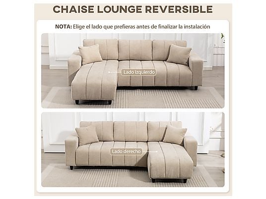 Sofá Esquinero HOMCOM 83B-542V00BG Beige – Chaise Intercambiable, Muelles y Espuma, 242x156x87 cm
