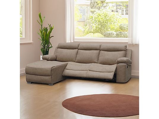 Sofá Relax 3 Plazas Duehome Nellie Cemento con Chaise Longue Derecho – Reclinable Motorizado, Microfibra, 276x187x102 cm