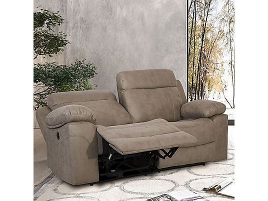 Sofá Relax Reclinable 2 Plazas Duehome Nellie Color Cemento con Reposapiés y Palanca – Microfibra, 164x96x102 cm