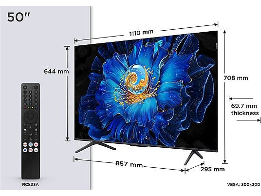 TCL 50C6KS TV Mini LED 50″ 4K UHD Smart TV, QD-Mini LED, Dolby Vision & Atmos, AiPQ Pro, DVB-T2, 3 HDMI, Negro