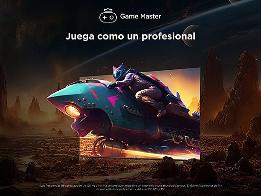 El sonido también destaca gracias a Dolby Atmos, que crea una experiencia envolvente digna de cine en casa. Además, incorpora Game Master, una función ideal para gamers que mejora la fluidez y el rendimiento durante las partidas.