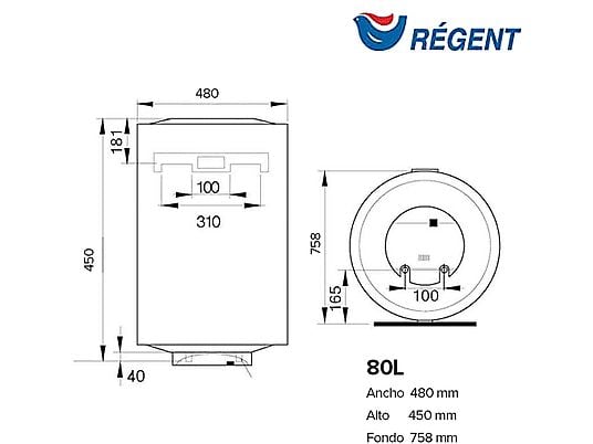 Termo eléctrico Ariston Regent 80L Blanco. Calderín esmaltado en titanio, ánodo de magnesio, manguitos dieléctricos, control mecánico y eficiencia energética Clase C.