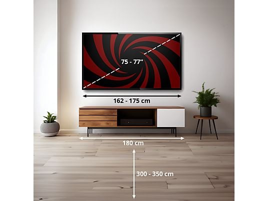 El sistema Google TV proporciona acceso a aplicaciones de streaming, recomendaciones personalizadas y control de contenido mediante asistentes de voz. Su diseño elegante en negro y su soporte central robusto se integran en cualquier salón grande, mientras que sus 3 puertos HDMI y 2 USB permiten conectar consolas, discos duros y otros dispositivos. Esta TV combina tamaño, calidad de imagen, sonido y conectividad en un solo producto de alta gama.