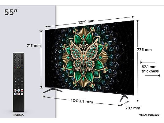 • TV Mini LED 55" TCL 55C6K, UHD 4K, QD-Mini LED, 144Hz, AiPQ Pro, Google TV, Dolby Vision & Atmos, Negro
