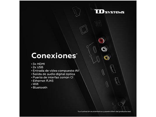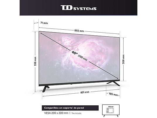 TV QLED 40" TD Systems M40QC22TIZEN, Full HD, Tizen OS 8.0 (Samsung), Smart TV, HDR10, Dolby Digital Plus, Negro