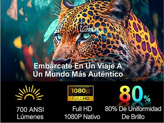 Con una resolución Full HD 1080p nativa y compatibilidad con contenido 4K, este proyector ofrece imágenes nítidas y detalladas. Sus 700 lúmenes ANSI, junto con tecnologías HDR10 y HLG, proporcionan colores más vivos, mayor contraste y una excelente calidad visual incluso en entornos con luz moderada.